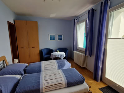 In diesem Doppelzimmer können Sie vom Bett aus den Bodensee genießen. Fernseher, ein Telefon sind Standart. Eingroßzügiges Bad mit Dusche und WC ist vorhanden. Von diesem Zimmer haben Sie einen eigenen Zugang auf den hauseigenen Balkon.